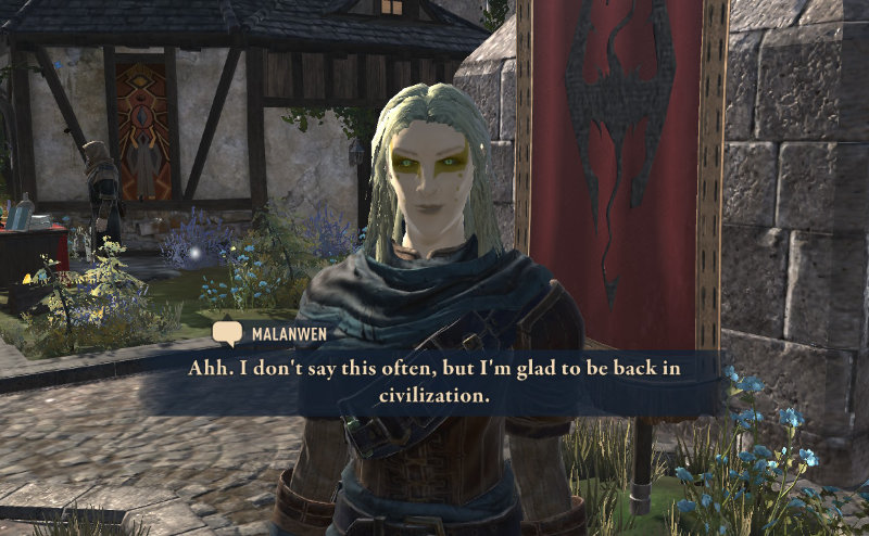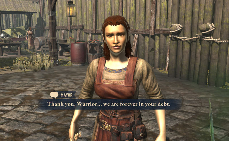 街への帰還後、正門のところでマラウェンと軽く会話を交わす。これからは彼女もここに常駐するようになるのかなと思いきや、ロードを挟んで来てみたら、すでにいなくなってた。新しい街の住人が増えたと思ったのに残念。まあ、とりあえず後味の悪いクエストではなかったみたいなので、よかったよかった。