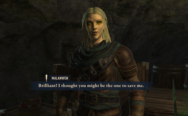 鍵を手に入れたのでそのまま奥に進むと、ついに目的のマラウェンを発見した。美人を期待していたわけではないが、想像よりも斜め上をいく容姿。いかんせんワイトっぽくて怪しいが、どうやら師匠ヘンリック・セブンソードのことを知ってるみたいなので、大丈夫そう。
