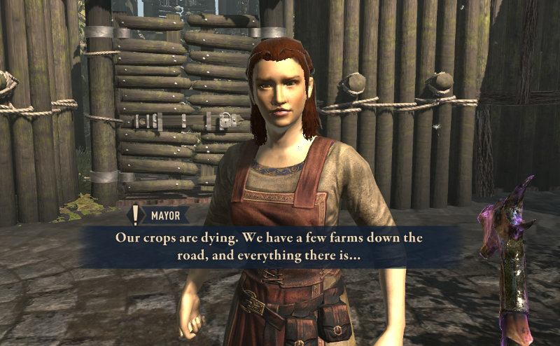 この村だけど、残った村人たちに話を聞いてみると穀物を栽培して販売していて生計をたてている様子…っていうか、どう見ても村というより市場にしか見えん。スカイリムのカイネスグローブもそうだったけど、村や街とか言いながら、その規模に達してないところがちょこちょこあるなぁ。
