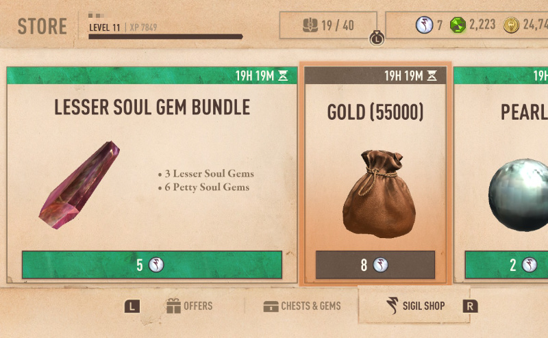 ダンジョン内部にはなんとゴールドの宝箱が一つあり、さらにボスを倒してクエストを完了させると、SIGILというポイントやお金、素材などが手に入る。このSIGILを使えば、【SIGIL SHOP】で、魂石や銅鉱石を含む各種素材、現時点ではまだ入手できない装備などを入手したりすることができる。これはかなり大きい。