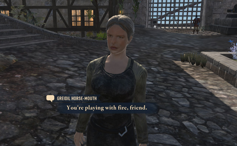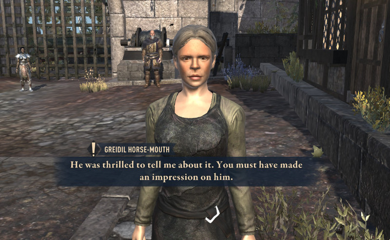 日本配信版ではこの人にまつわるクエストが無かったので、ずっと感じ悪いままだったと思う。もっとも、街の正門近くにいる帝国の使者のオッサンは一連のゴブリンクエストをすべて終わらせても嫌味を言ってきて感じ悪いけど…