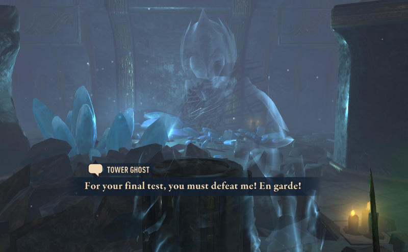 まだ、プレイをはじめてからそれほど経っていない頃、魔術師がいろんな仕掛けを施した塔を作ったらしいから遊びにいってみたら?と町の住人から受けるクエストがある。塔のなかは青白くモヤがかかったような感じになっており、騎士のゴーストと対戦するとても印象的なクエストなので、既プレイの人なら覚えてる人は多いはず。実はそのクエストには続編がある。