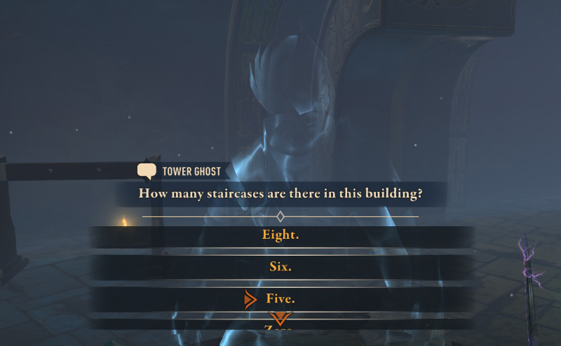 ただし、基本的には1階の入り口にいる受付の騎士のゴーストが非常にマメにヒントをくれるので、少しでもおや?っと思ったら、その都度一旦戻ってから彼にヒントをもらえば、ほとんどの謎解きや仕掛けはクリアできる(っぽい)。っていうのも、そんなことはつゆ知らず、ヘタレな私はクイズの答えはネットで検索して、あとから色々ヒントをくれるのに気づいた。
