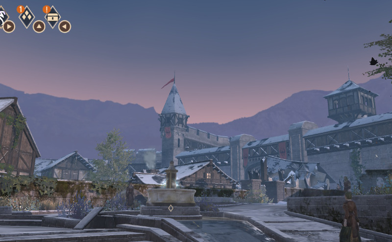 ずっと言い忘れていたことがあるけど、実は12月に入ってからアップデートがあり、拠点の街の景色が通常のタイプから冬バージョンに変わった。ご覧のとおり、白夜みたいな感じ。ただ、変わったのは町並みと建物だけで、小中大の装飾品は見た目の変化はない。